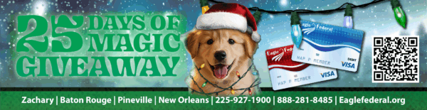 To enter the contest without entry, send a self-addressed, stamped envelope to: Eagle Federal Credit Union, P.O. Box 64630 Baton Rouge, La. 70896.