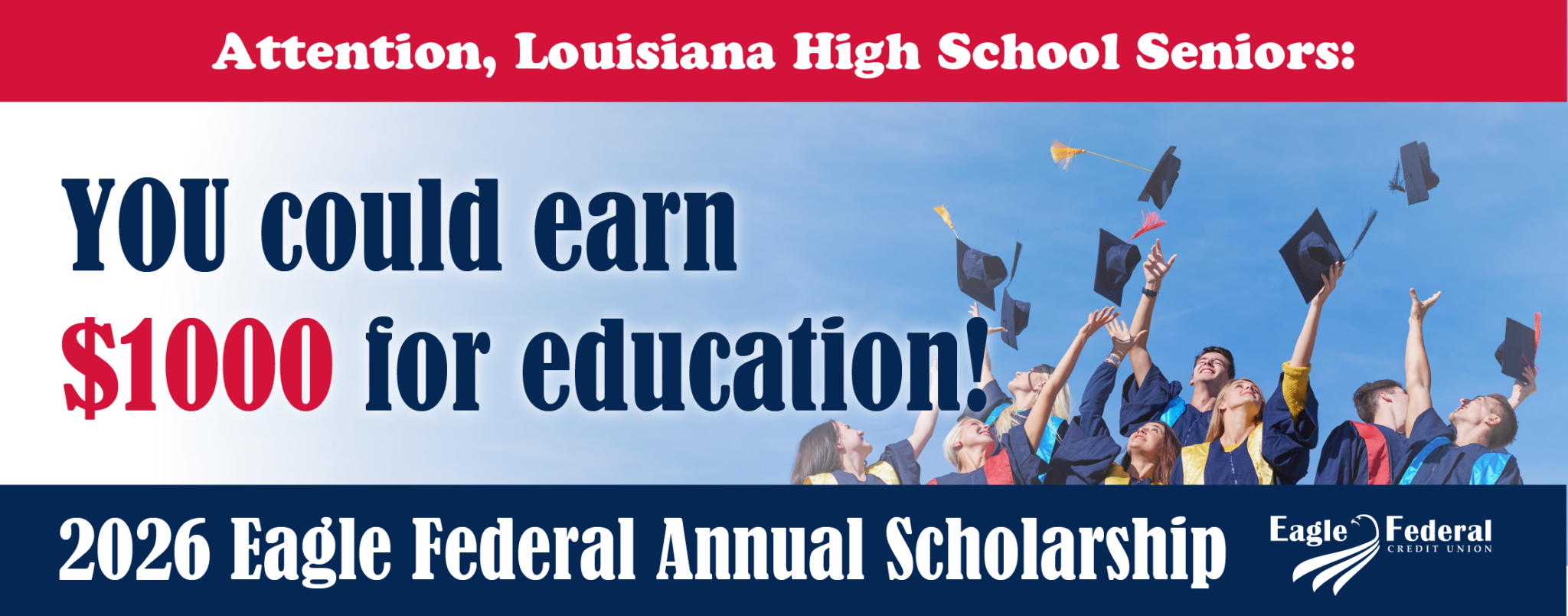 Eagle Federal is offering a helping hand to one graduating senior again this year. We are proud to offer a $1,000 scholarship based on academic achievement and the submission of an essay. We are committed to supporting financial literacy and improving the financial lives of young adults through this scholarship program and educational events.